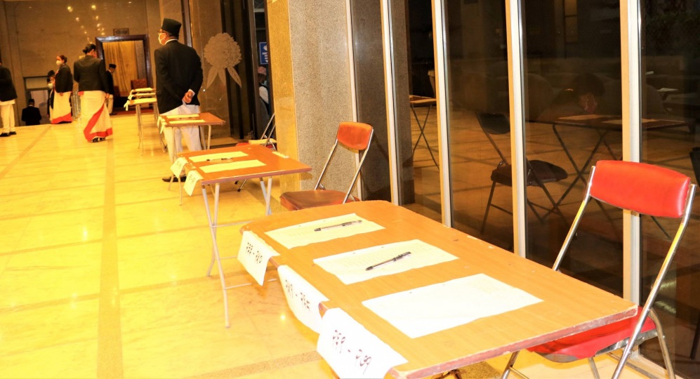 तटस्थ बस्नेहरुलाई सभामुखको आसन पछाडि रहेको लविमा गएर आफ्नो नाम रहेको महलमा हस्ताक्षर गर्ने व्यवस्था मिलाइएको छ । यसैगरी कोरोना संक्रमण भएका सांसदले ल्होत्से हलमा गएर मतदान गर्न सक्नेछन् ।