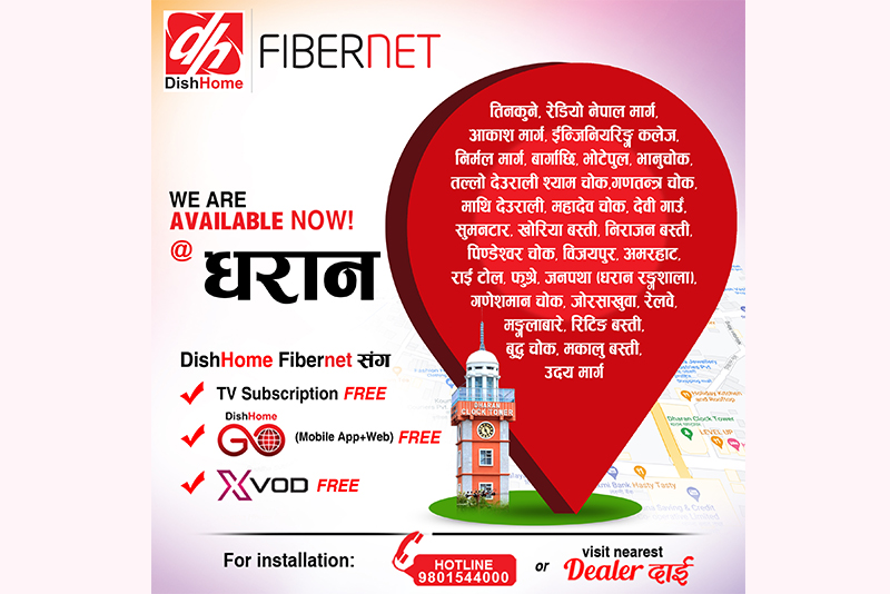 काठमाडौं । डिशहोमले प्रदेश १ को धरानमा पनि फाइबरनेट सेवा बिस्तार गरेको छ।