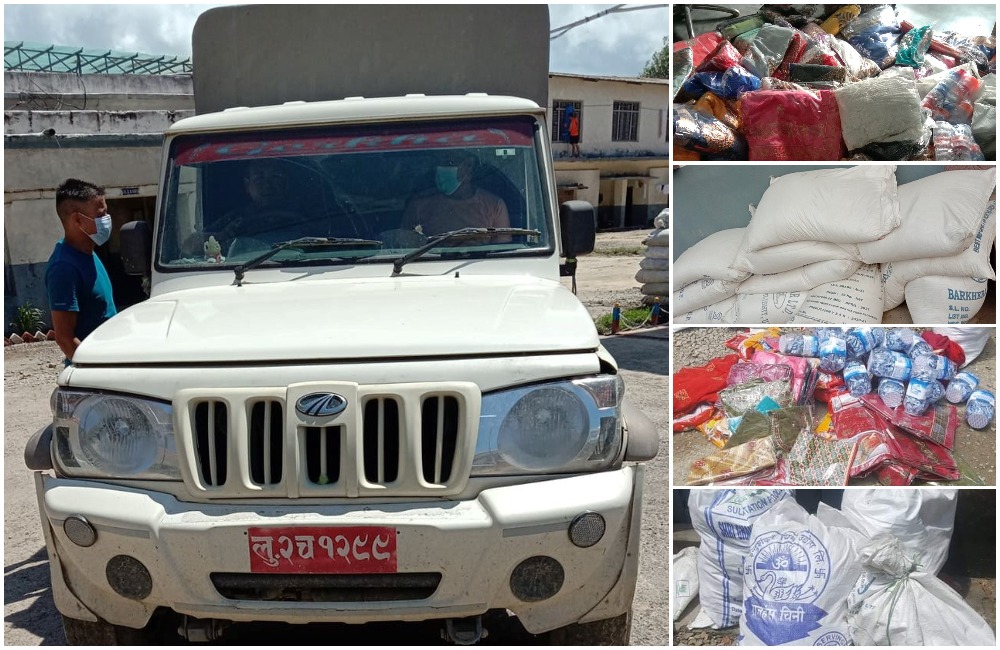 प्रहरीका अनुसार लु २ ख १२९९ नम्बरको बलेरो पिकअप गाडीमा भन्सार छली अवैध रुपमा ल्याउँदै गरेको २६ बोरा चिनि, १८ बोरा मटर, बिभिन्न किसिमका लत्ता कपडा, हुक्का स्मोक पाईप, हुक्काको आल्मिनियम ग्राईन्डर, हुक्का फेलेबर, हुक्का पाईप, हुक्का पेपर र मिनि हुक्का लगायतका बिभिन्न माल सामनहरु सहित भारतवाट नेपालतर्फ आउँदै गरेको अवस्थामा प्रहरीले नियन्त्रणमा लिएको हो ।