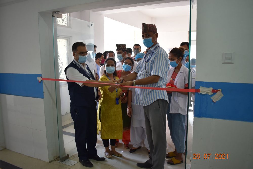 ३ करोड ९९ लाखमा निर्माण भएको भवनमा क्याविन सेवाको अस्पताल विकास समितिका अध्यक्ष सुर्यबहादुर भट्टराईले उदघाटन गरेका थिए । उनले उद्घाटन कार्यक्रममा बोल्दै अस्पतालमा विशिष्ट सुविधासहितको सेवामा नयाँ आयाम थपिएको उल्लेख गरे ।
