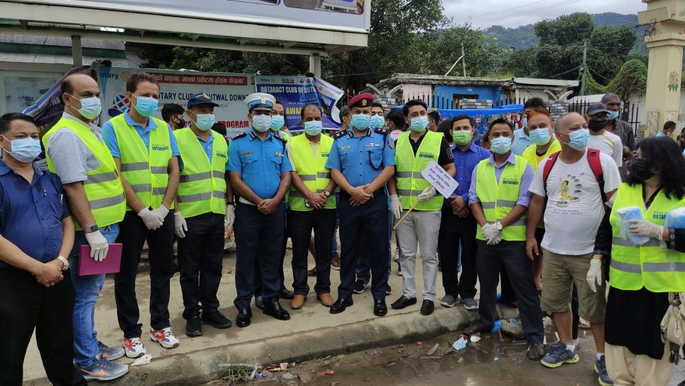 बुटवल । रोटरी क्लब अफ बुटवल डाउनटाउनले कोभिड १९ संक्रमणबाट बच्न सचेतना कार्यक्रम गरेको छ । क्लबको अगुवाईमा रोट्रयाक्ट क्लब अफ बुटवल डाउनटाउन, रामापिथेकस, सिनर्जी, इन्ट्रयाक्ट क्लब अफ स्कलर्स होम, गार्गी एकेडेमीको आयोजना शुक्रबार लुम्बिनी प्रादेशिक अस्पताल गेट अगाडि औपचारिक कार्यक्रम गरेको हो । मानिसहरु हेलचेक्राई गर्दा संक्रमणको डर भएकाले कार्यक्रम गरिएको क्लबका अध्यक्ष जविन कक्षपतिले बताए ।