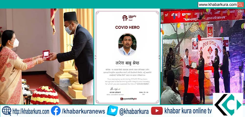 कोभिड हिरो नरेशकाे पाेल्टामा पदक, सम्मान र पुरस्कारकाे थुप्राे; भन्छन् – जिम्मेवारी थपियाे
