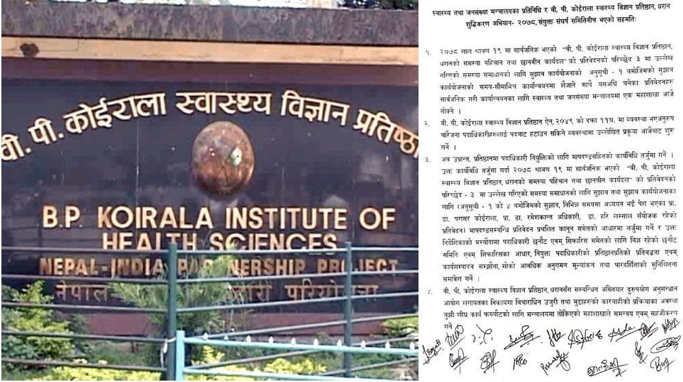 काठमाडौं । धरानस्थित बीपी कोइराला स्वास्थ्य विज्ञान प्रतिष्ठानमा जारी संघर्ष स्थगित हुने भएको छ ।