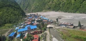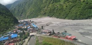 मनाङ । गत असार १ गते बाढीका कारण गाउँ नै डुबानमा परी बगर बनेको छ । गाउँ नै बगर बनेपछि त्रिपालको भरमा बस्दै आएका नासों गाउँपालिका–१ ताल गाउँका बासिन्दा पुनर्वासको पर्खाइमा छन् । अविरल वर्षापछि मस्र्याङ्दी नदीमा आएको बाढीले ताल गाउँ पूरै बगर भएपछि स्थानीयवासी गाउँमाथिको डाँडामा विस्थापित भएका छन् ।