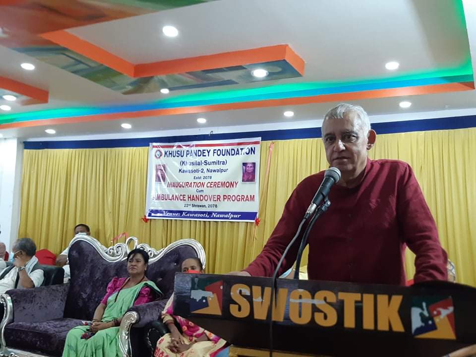 आज कोइराला प्रजातान्त्रका सेनानी स्व. खुसीलाल पाण्डे र उनकी धर्मपत्नी सुमित्रा पाण्डेको स्मृतिमा स्थापना गरिएको खुसु फाउन्डेसनको उदघाटन गर्न जिल्ला आइपुगेका हुन् ।