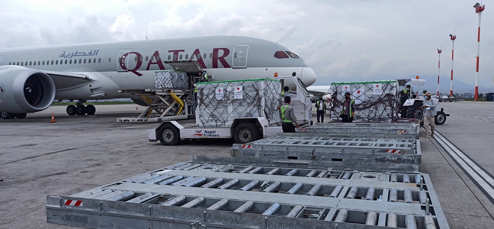 कोभ्याक्स परियोजनामार्फत जापान सरकारले नेपाललाई उपलब्ध गराएको एस्ट्राजेनेकाको खोप लिएर आएको कतार एयरवेजको विमान शनिबार बिहान त्रिभुवन अन्तर्राष्ट्रिय विमानस्थलमा अवतरण गरेको छ ।