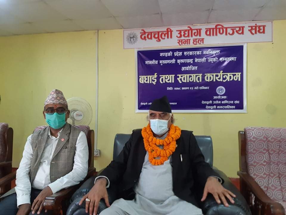 आज देवचुली उद्योग वाणिज्य संघले दलदलेमा गरेकाे बधाई तथा स्वागत कार्यक्रममा बाेल्दै मुख्यमन्त्री पोखरेलले गण्डकी प्रदेशकाे समृद्धिका लागि सरकार र निजी क्षेत्रबीचको सम्बन्धले मात्रै प्रदेशकाे बिकास हुने बताए । उनले भने, ‘लगानीमैत्री वातावरणका लागि नीतिगत, कानुनी, संस्थागत संरचना र प्रक्रियागत सुधार गर्न सरकार तयार छ।’