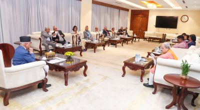 काठमाडौं । सत्तारुढ गठबन्धनका शीर्ष नेता र गठबन्धनको कार्यदलबीच संयुक्त छलफल भैरहेको छ