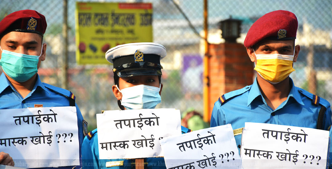 कोभिड–१९ सङ्क्रमणको रोकथाम तथा जोखिम न्यूनीकरणका लागि नेपाल प्रहरीद्वारा सञ्चालित ‘तपाईंको मास्क खोइ रु’ कार्यक्रमअन्तर्गत आइतबारमात्रै १० हजार ७६ लाई निःशुल्क मास्क वितरण गरिएको प्रहरी प्रवक्ता प्रहरी वरिष्ठ उपरीक्षक वसन्तबहादुर कुँवरले जानकारी दिए । उनका अनुसार प्रहरीले गत वैशाख ६ गतेदेखि हालसम्म पाँच लाख ३७ हजार ७४९ लाई मास्क वितरण गरिसकेको छ । नयाँ भेरियन्टसहितको कोभिड–१९ को सङ्क्रमण बढ्दै गएको सन्दर्भमा त्यसलाई रोक्न तोकिएको सुरक्षा मापदण्ड कार्यान्वयनका लागि नेपाल प्रहरीले ‘सङ्क्रमणबाट आफू बचौँ र अरुलाई पनि बचाऔँ’ भन्ने नारासहित उक्त अभियान थालेको थियो ।