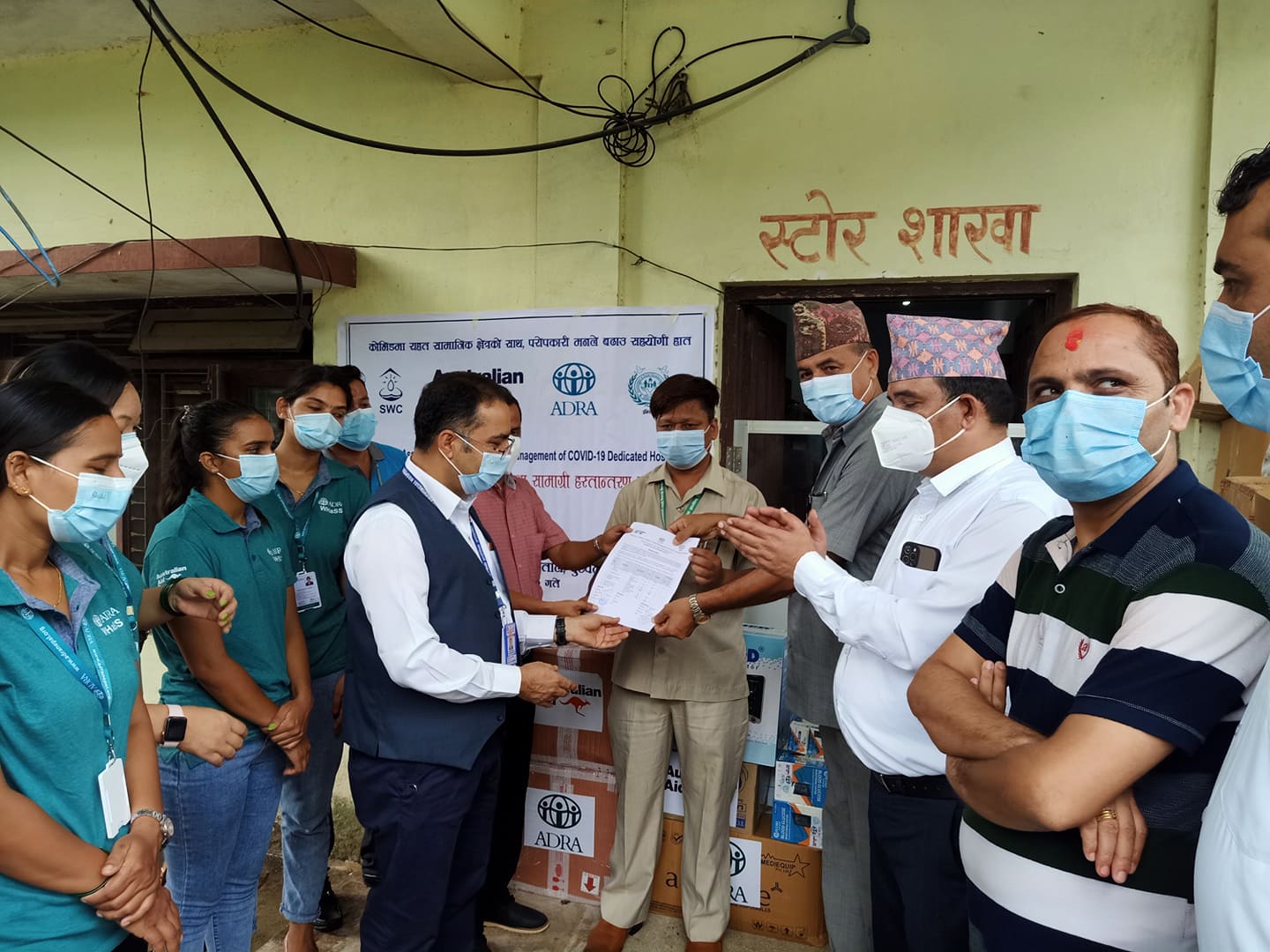 अष्ट्रेलियन एडको सहयोगमा आड्राले पीपीई १ हजार सेट, गुल्कोमिटर १० पिस, गुल्कोमिटर स्ट्पि ३ सय पिस, अक्सिजन कन्सेन्टर ५, एन ९५ मास्क १ हजार प्याकेट, सेनिटाइजर १ सय बोतल, मेडिकल मास्क ५ हजार तथा ग्लब्स, भाइटल मनिटर अस्पताललाई सहयोग गरिएको हो ।