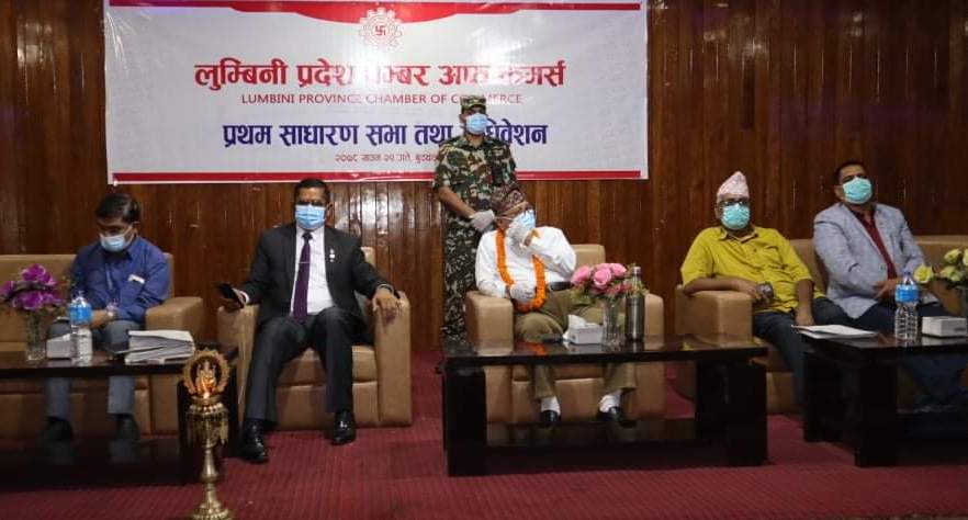 लुम्विनी चेम्बर अफ कमर्सका अध्यक्ष टंकप्रसाद पोखरेलले महामारीले आक्रान्त भएका बेला नीजि क्षेत्रले पुर्याएको योगदान नबिर्सिन सरकारलाई आग्रह गरे । उनले उद्योगी ब्यवसायीलाई कोभीड खोप उपलब्ध गराउने कुरामा राज्यले कञ्जुस्याईं गरिरहेको गुनासो गर्दै नीजि क्षेत्रले गरेको योगदानको कदर गर्न आग्रह गरे । रुपन्देही व्यापार संघका अध्यक्ष यमलाल लाोहनीको स्वागत तथा जेपी कंडेलको सञ्चालनमा भएको कार्यक्रममा आर्थिक मामिला मन्त्रालयका सचिव बाबुराम अधिकारी, उद्योग मन्त्रालयका डा. राजेन्द्र केसी, पत्रकार सुमन अधिकारी लगायतले आ आफ्नजो धारणा राखेका थिए ।