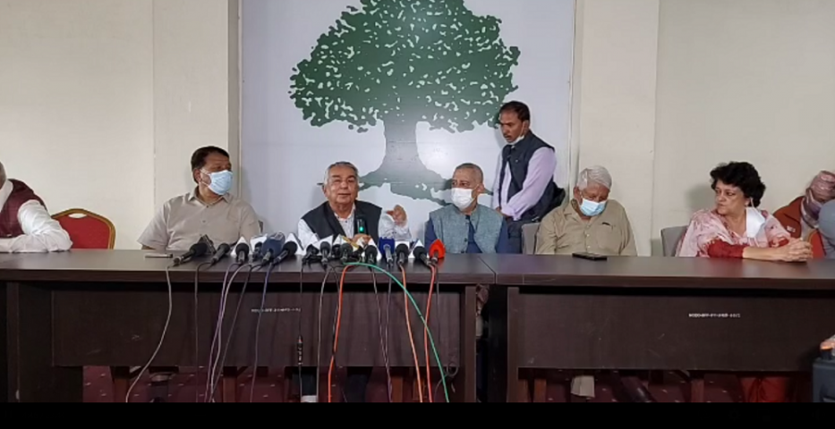 पत्रकार सम्मेलनमा आगामी महाधिवेशनमा सभापतिका आकांक्षी रहेका नेताहरू महामन्त्री डा। शशांक कोइराला, पूर्वमहामन्त्री प्रकाशमान सिंह, नेताहरू डा. शेखर कोइराला, अर्जुननरसिंह केसी, नेत्री सुजाता कोइराला र गगन थापा सहभागी थिए ।