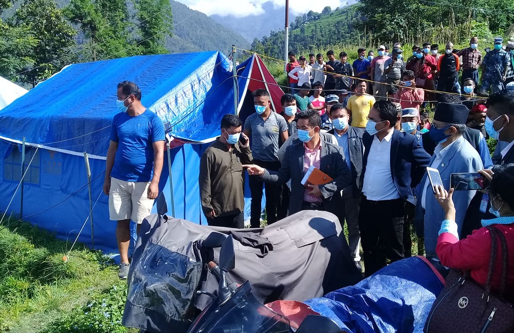 गृहमन्त्री खाँणसहितको टोलीले मेलम्ची नगरपालिकाको मेलम्ची बजार र सो वरपरका क्षेत्र तथा हेलम्बु गाउँपालिकाको वडा नम्बर–२ गणेशबजार क्षेत्रको स्थलगत निरीक्षण गरेको थियो ।