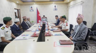 गृहमन्त्री बालकृष्ण खाँण, मुख्यसचिव शङ्करदास वैरागी, प्रधानसेनापति प्रभुराम शर्मा, रक्षा सचिव वेगेन्द्रराज शर्मालगायत उपस्थित रहेको उक्त बैठकमा सीमा सुरक्षा, एमसीसीलगायत समग्र सुरक्षासँग सम्बन्धित विषयका बारेमा समीक्षा भएको बताइएको छ ।
