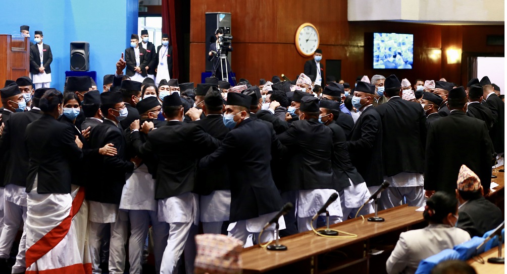 गत शुक्रबारको बैठकमा एमाले सांसदहरु मर्यादापालकको काँधमा चढ्ने, माइक तान्ने लगायतका क्रियाकलाप गरेपनि आजको बैठकमा भने संयमित हुन संसदीयदलका नेता केपी ओलीले सांसदहरुलाई निर्देशन दिएका थिए । ओलीले संसद अवरुद्ध भने जारी राख्न सांसदहरुलाई भनेका थिए ।