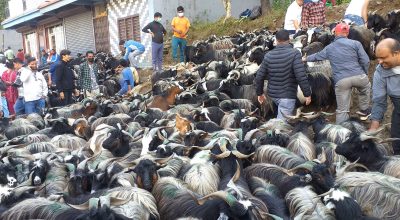 भक्तपुर । दसैँको लागि मुस्ताङ हुँदै ल्याइएको च्याङ्ग्राको मूल्य यस वर्ष अत्यधिक बढेको छ । सल्लाघारीस्थित नेपाल ट्रष्टको नाममा रहेको १०८ रोपनी चौरमा दुई हजार ५०० च्याङ्ग्रा र करिब दुई हजार खसी बोका बिक्रीका लागि ल्याइएको छ । सोमबारदेखि खरिदका लागि ग्राहक आए पनि बुधबार बिहानैदेखि च्याङ्ग्रा, खसी, बोका खरिद गर्नका लागि ग्राहकको भीड लागेको छ ।