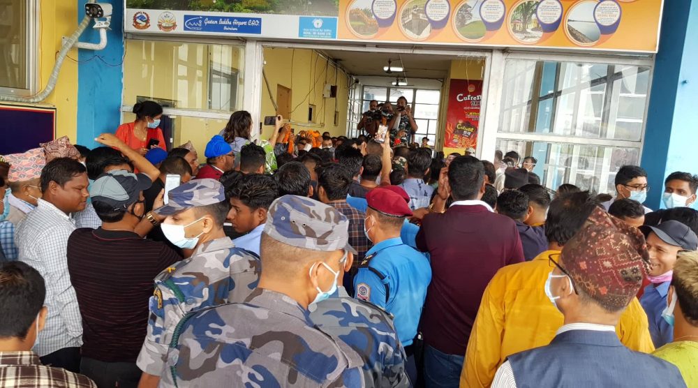 विमानस्थल सुरक्षा व्यवस्थाको धज्जी उडाउँदै गृहमन्त्री खाँण गृह जिल्ला रुपन्देहीमा (फोटो फिचर)