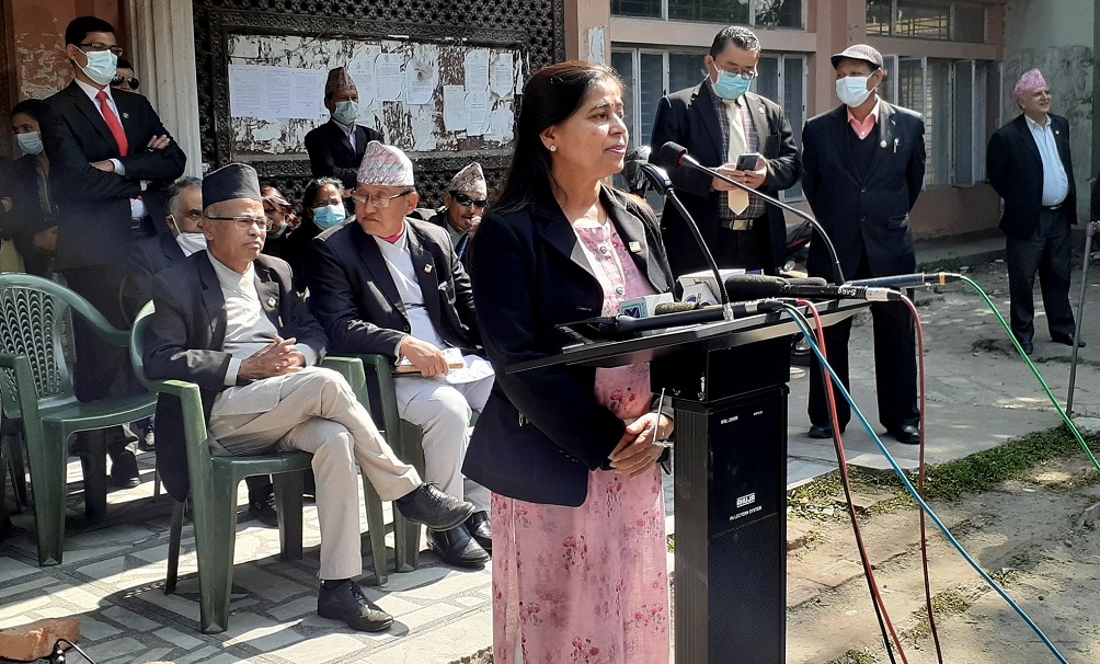 यसअघि बारले आयोजना गरेको विरोध कार्यक्रमलाई सम्बोधन गर्दै बार उपाध्यक्ष रक्षा बस्यालले प्रधानन्यायाधीशको राजीनामा माग गरिन् ।