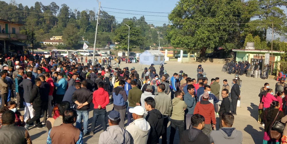 पोखरेलको विरोधमा गठबन्धनका कार्यकर्ताहरुले कार्यक्रम स्थल वरिपरि घेरा हालेर बसेका छन् । यस्तै ठूलो संखयामा उपस्थित एमालेका युवाहरु पनि जस्तोसुकै अवस्थाको सामना गर्ने भन्दै कार्यक्रमस्थलमा तम्तयार अवस्थामा रहेका छन् । दुई पक्षबीच तनाब बढ्ने अवस्था देखिएपछि प्रशासनले निषेधाज्ञा लगाएको हो । लोकतान्त्रिक चोकमा रहेको वाल उद्यान पार्कमा ठूलो संख्यामा सुरक्षाकर्मी परिचालन गरिएको छ ।