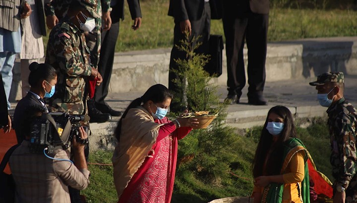 कमलपोखरी पुग्नु अघि राष्ट्रपति भण्डारी गौरीघाट पुगेर पूर्जाको पूवए तयारीको अवलोकन गरेकी थिईन् ।