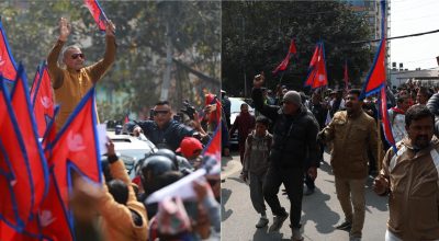 पूर्वराजा काठमाडौं आउँदा गोल्डेनगेट क्षेत्रमा दुर्गाप्रसाईं नेतृत्वमा प्रदर्शन, हवाई यात्रुलाई सास्ती