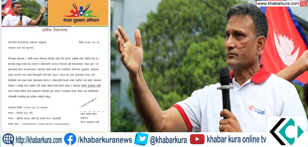 काठमाडौं । नेपाल प्रहरीका पूर्वडीआईजी रमेश खरेलले आज शुक्रबार नेपाल सुशासन पार्टी नामक नयाँ दल घोषणा गर्ने भएका छन् ।