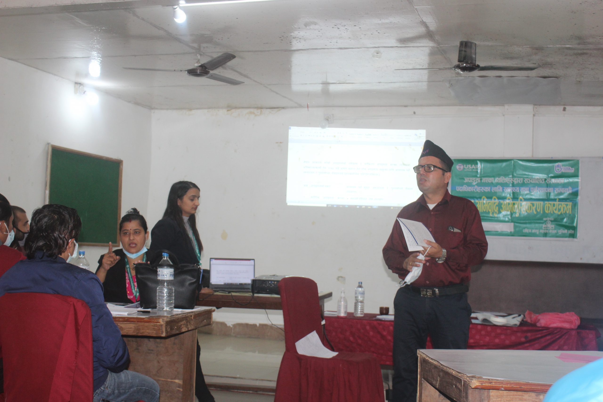 तालिममा राष्ट्रिय अपाङ्ग महासंघ नेपाल लुम्बिनी प्रदेश सचिव हुमनाथ अधिकारी, राष्ट्रिय अपाङ्ग महासंघ नेपाल लुम्बिनी प्रदेश कार्यालय परियोजना अधिकृत शृजना पन्थी लम्साल र राष्ट्रिय अपाङ्ग महासंघ संघीय महासचिव राजु बस्नेत, प्रदेश सदस्य सावित्रा घिमिरे लगायतले सहकजीकरण गरेका थिए ।