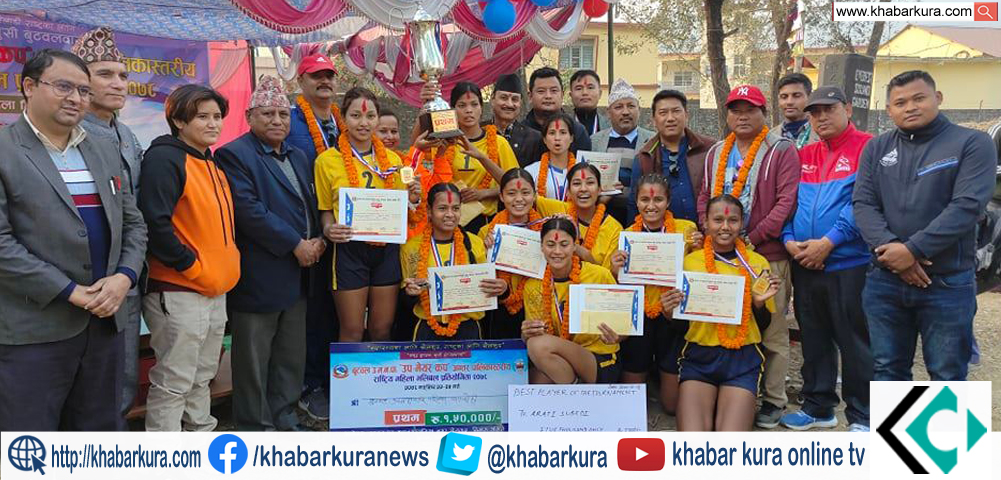 बुटवल । बुटवल उपमहानगरपालिका उपमेयर कप अन्तर पालिकास्तरिय राष्ट्रिय महिला भलिबल प्रतियोगिता २०७८ को उपाधि आयोजक बुटवल उपमहानगरपालिकाले हात पारेको छ ।