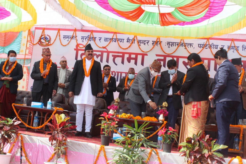 तिलोत्तमा नगरपालिकाले आयोजना गरेको घोषणासभामा पूर्वअर्थमन्त्री एवं प्रतिनिधिसभा सदस्य विष्णुप्रसाद पौडेलले बालमैत्री स्थानीय शासनयुक्त नगर घोषणा गरेका थिए ।