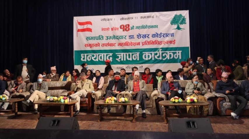कोइराला पक्षले महाधिवेशन प्रतिनिधिलाई धन्यवाद दिन बुधबार आयोजना गरेको कार्यक्रममा उनले भने, ‘नेपाली कांग्रेसका तपाईं जस्ता साथीहरू, लोकतन्त्र प्रेमी नेपाली, कांग्रेसलाई माया गर्ने साथीहरू र आम जनताले हामीले लिएको कदम र हाम्रो टिमले लिएको कदमको विजय उहाँहरूले सोच्नुभएको छ । त्यसकारण पनि हामी विजयी भएका छौँ ।’