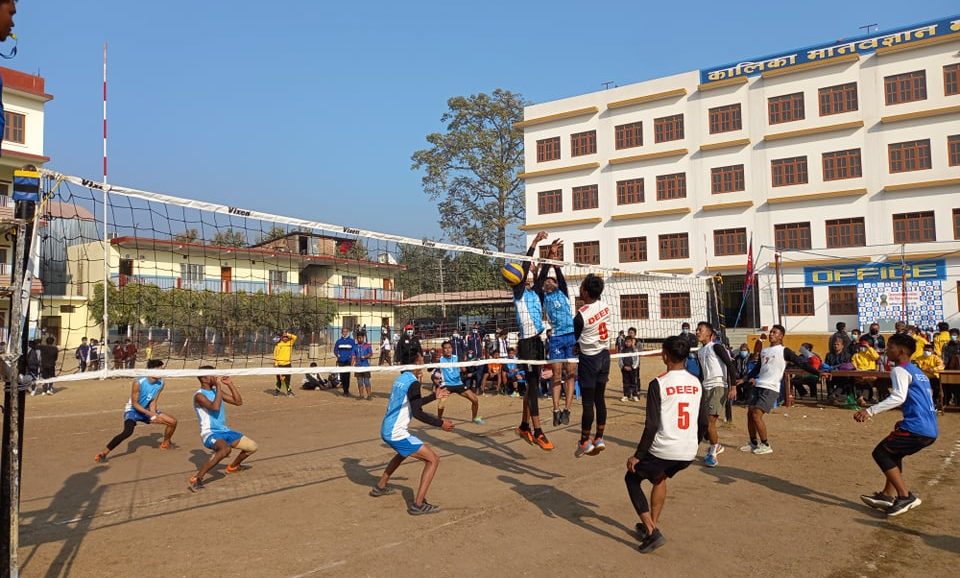 छात्र भलिबलको क्वाटर फाइनलमा एभरेस्ट बोर्डिङ स्कूललाई हराएर दिप बोर्डिङ स्कुल फाइनलमा प्रवेश गरिसकेको छ । कुवरवर्ती स्कुल र सेन्ट जोसेफ स्कूल बीचमा पुस ६ गते हुने अर्को सेमिफाइनल खेलले फाईनलमा पुग्ने टिम तय गर्नेछ । फाइनल खेल सम्पन्न भएपछी रनिङ शिल्डको विजेता घोषणा गरिने खेल संयोजक हरिश वलीले बताए ।