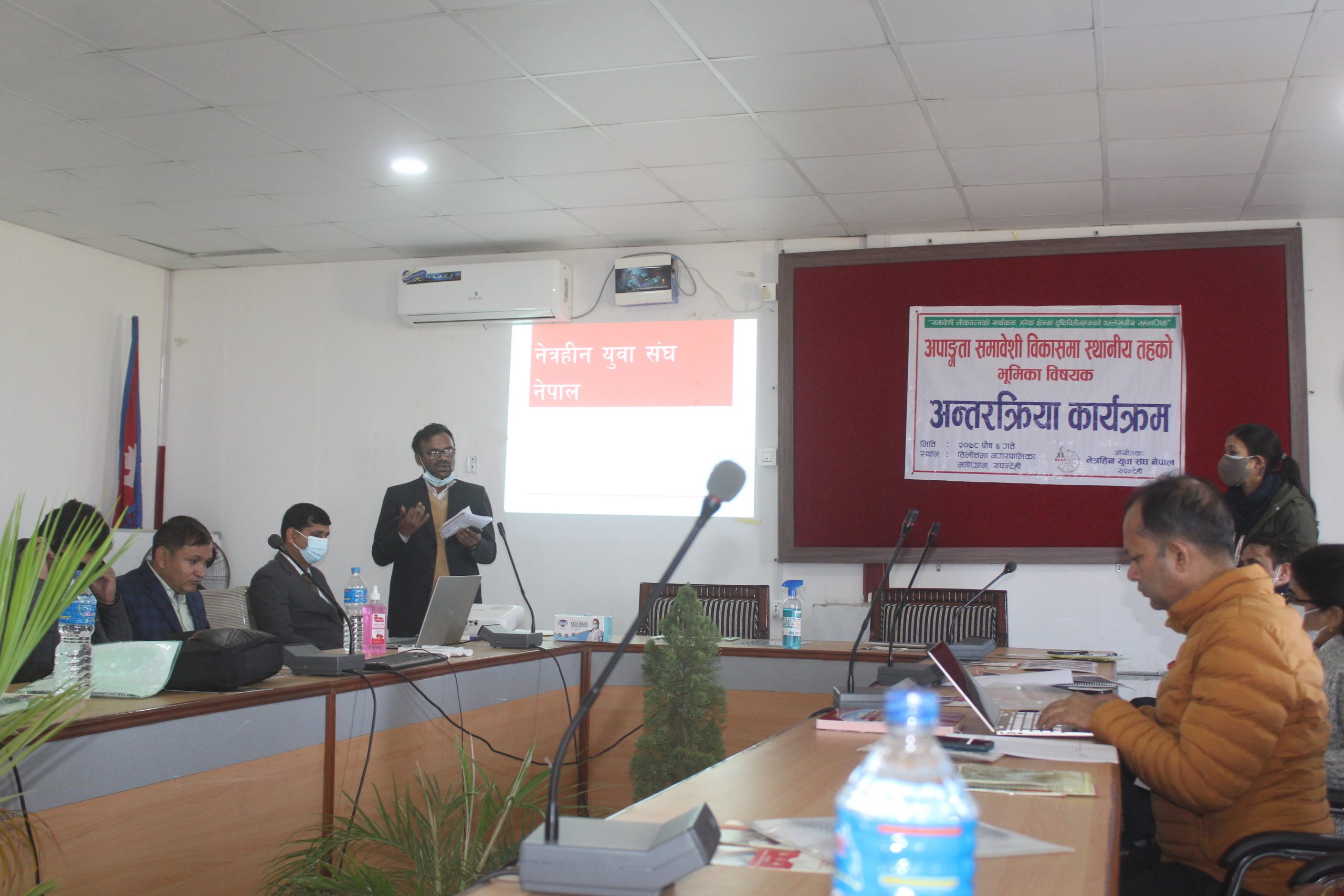 नेत्रहिन युवा संघ नेपाल रुपन्देहीका अध्यक्ष टिकराम पौडेलको सञ्चालनमा भएको कार्यक्रममा उपाध्यक्ष जीवन पोखरेलले स्वागत मन्तव्य राखेका थिए । नगरपालिका स्वाथ्य शाखा प्रमुख, शिक्षा साखा प्रमुखहरुले आफ्नो प्रतिवद्धता मन्तव्य राखेका थिए ।