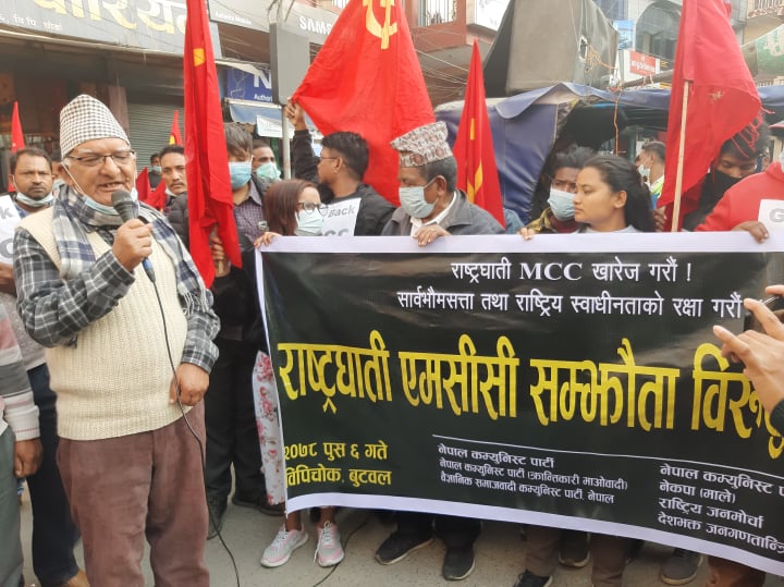 नेकपा मसाल, नेकपा माले, विप्लव नेतृत्व नेकपा, नेकपा क्रान्तिकारी माओवादी, राष्ट्रिय जनमोर्चा, वैज्ञानिक समाजवादी कम्युनिष्ट पार्टी नेपाल, देशभक्त जनगणतान्त्रिक मोर्चा नेपाल लगायतका राजनीतिक दलले बुटवलमा एमसीसी बिरुद्व बिरोध सभाको आयोजना गरेका थिए ।