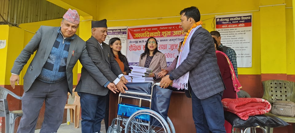 जन्मदिनकै अवसर पारेर शनिबार वडा कार्यालयमार्फत विद्यालयलाई स्वास्थ्य सामग्री समेत हस्तान्तरण गरिएको छ ।