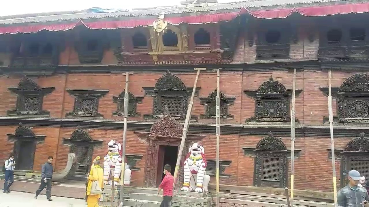 “भवनको भित्री भाग चर्किएको छ, दलिन कुहिएको छ, वरिपरि टेकोका भरमा भवन अडिएको छ, भित्री चोकको टेको भने यसै वर्ष इन्द्रजात्रा बेला निकालियो, भ(याङ जीर्ण भएर हनुमानढोका दरबार हेरचाह अड्डाले बनाइदिएको छ, मूल भवन भने अझै बनाउने अत्तोपत्तो छैन”, उनले भने ।