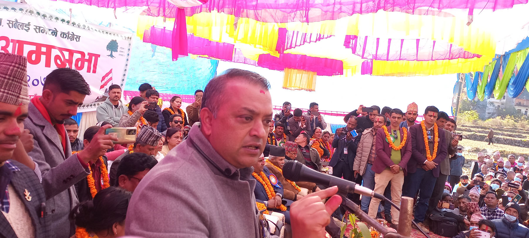 कांग्रेस पाणिनी गाउँ समितिले सोमबार दुर्गाफाँटमा आयोजना गरेको आमसभामा थापाले १५ लाखलाई पार्टी प्रवेश गराउने क्रम अर्घाखाँचीबाटै सुरु भएको समेत बताए । ‘आज मात्र पाँच सयजना कांग्रेस पार्टीमा प्रवेश गर्नुभएको छ,’ नेता थापाले भने, ‘अब १४ लाख ९९ हजार पाँच सय जनालाई पार्टी प्रवेश गराउँनुछ । त्यो पनि ७–८ महिनामा ।’