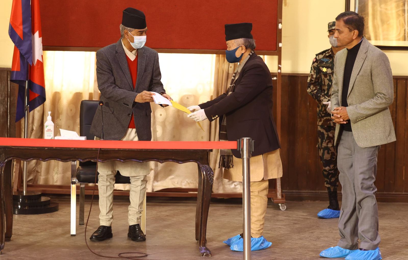 एमाले नेता सुवासचन्द्र नेम्वाङको नेतृत्वमा आएको प्रतिनिधिमण्डलले प्रधानमन्त्रीलाई कोभिड रोकथाम र उपचारका बारेमा ज्ञापनपत्र बुझाएको छ ।