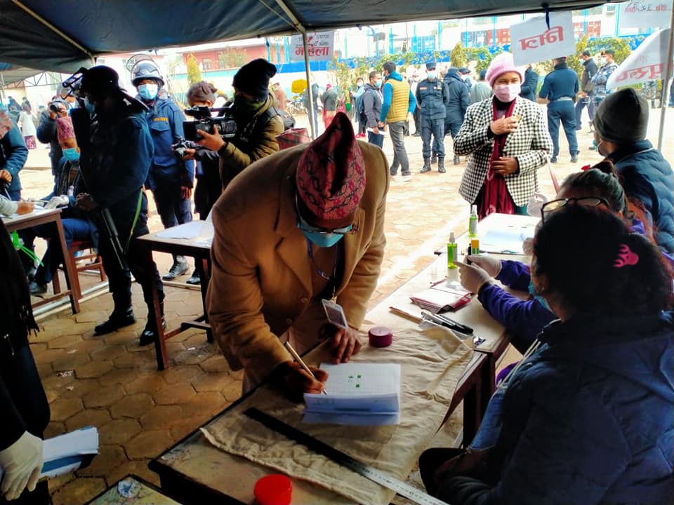 बिहान ९ बजेदेखि शुरु भएको मतदान दिउँसो ३ बजेसम्म चल्ने निर्वाचन कार्यालयका नायब सुब्बा हिरानन्द पोख्रेलले बताए । ‘दुईवटा मतदान केन्द्रमा मतदान भइरहेको छ,’ उनले भने, ‘निर्वाचन अधिकृतसहित १८ जना कर्मचारीले निर्वाचनको काम गरिरहेका छन् ।’