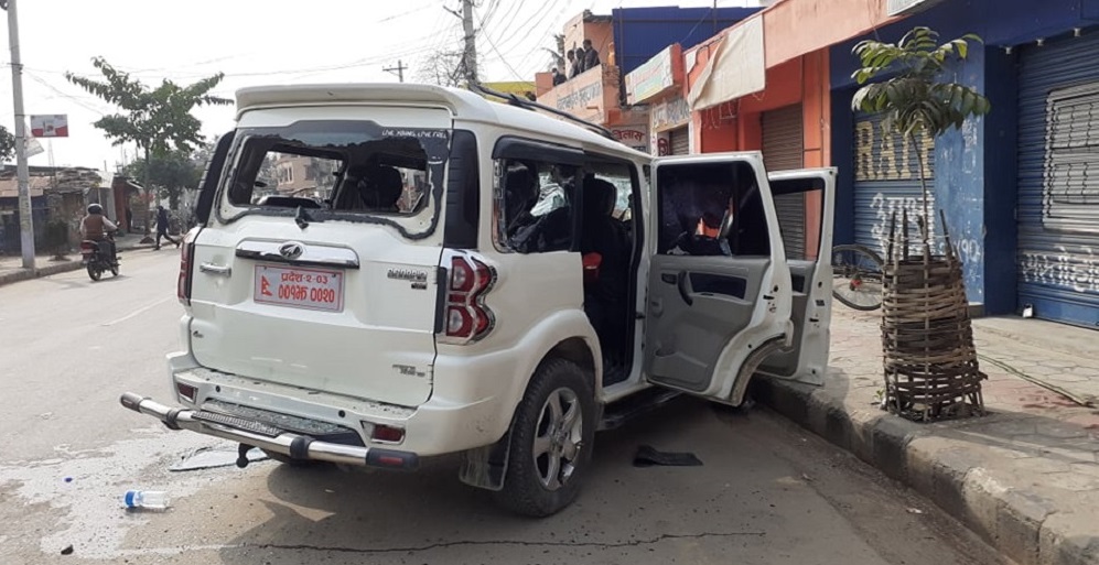जनकपुरधाम । सिके राउत नेतृत्वको जनमत पार्टीका कार्यकर्ताले सर्लाही हरिवन नगरपालिकाका मेयर गणेशप्रसाद प्रसाईं चढ्ने गाडी नियन्त्रणमा लिएर तोडफोड गरेका हुन् ।