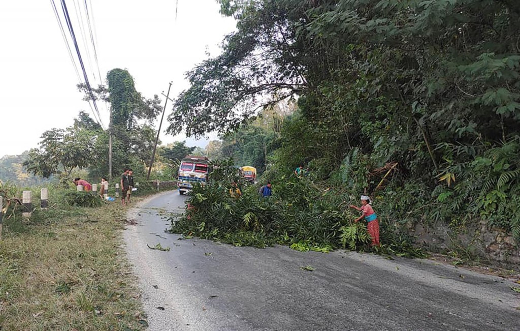 मुग्लिङ पोखरा सडक चार लेन बनाउने योजना अन्तर्गत सडक क्षेत्रभित्र पर्ने रुख हटाउन थालिएको मुग्लिङ पोखरा सडक योजना (पूर्वी खण्ड) का प्रमुख नरेन्द्र सुवेदीले जानकारी दिए । ‘पूर्वी खण्ड अन्तर्गत जामुनेदेखि आँबुखैरेनीसम्म करिब ५० प्रतिशत रुख काटिसकिएको छ,’ उनले भने, ‘रुख कटान सकिएलगत्तै बाँकी कामलाई पनि अगाडी बढाउँछौ ।’ उनका अनुसार आयोजनाले बाटो चौडा गर्ने कामलाई पनि अगाडी बढाइरहेको छ ।