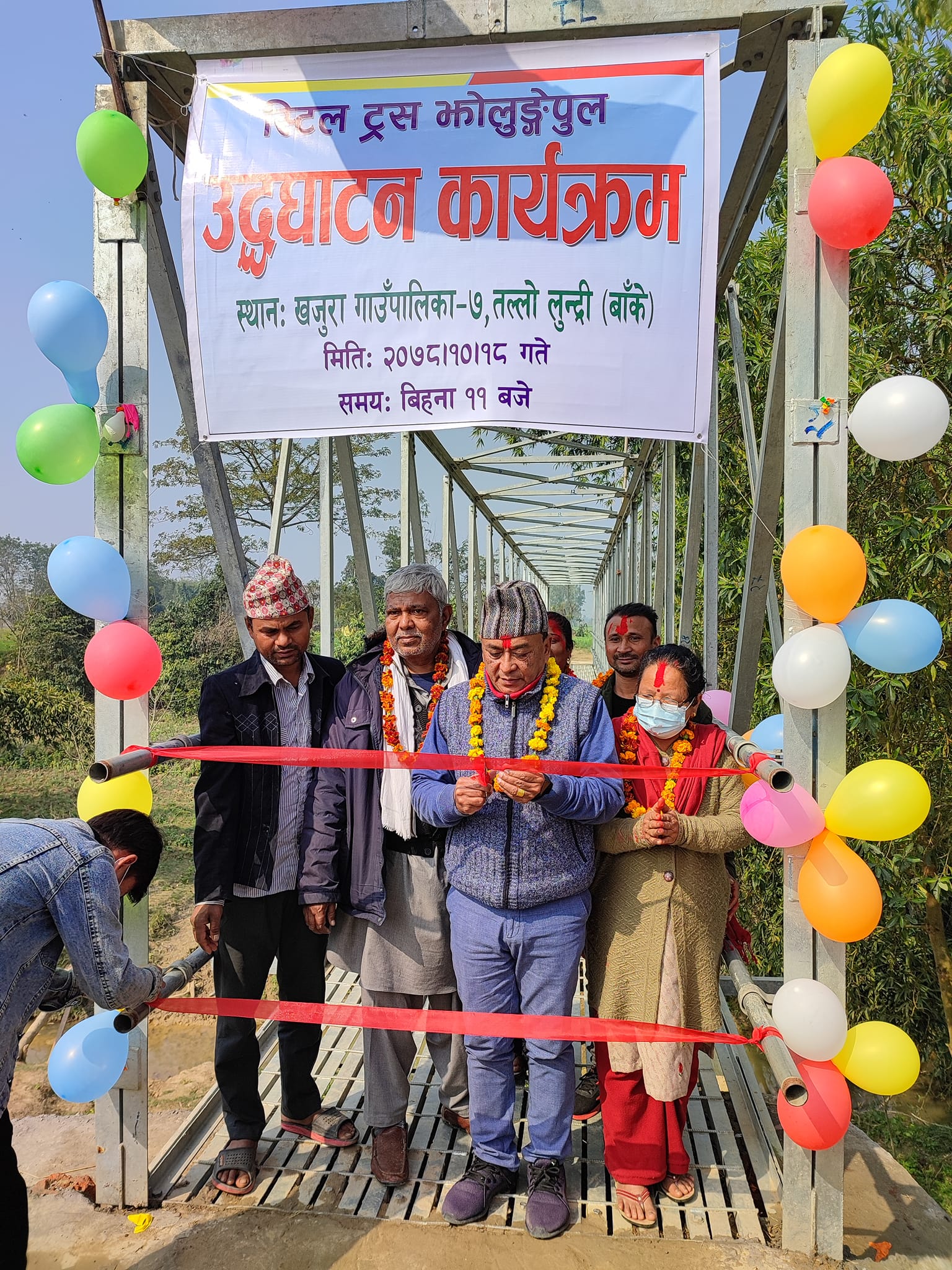 बाँके । बाँकेको खजुरा गाउँपालिका वडा नं. ७ सिन्दुरेस्थित जेठी नालामा स्टील ट्रस पुल निर्माण भएपछि स्थानीयले खुसी व्यक्त गरेका छन् ।