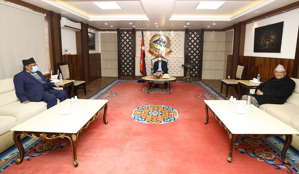 प्रधानमन्त्रीको सरकारी निवास बालुवाटारमा आइतबार नेपाली कांग्रेसका सभापति एवं प्रधानमन्त्री शेरबहादुर देउवा, नेकपा एमालेका अध्यक्ष केपी शर्मा ओली र नेकपा माओवादी केन्द्रका अध्यक्ष पुष्पकमल दाहाल प्रचण्डबीच छलफल भएको हो ।