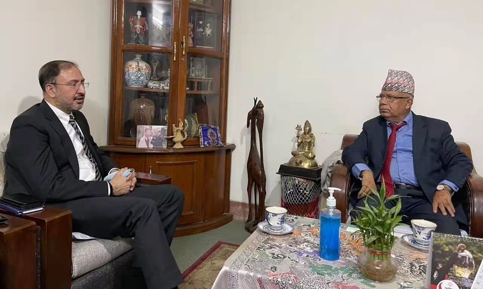 काठमाडौं । नेपालका लागि पाकिस्तानका राजदूत सैयद हैदर शाहले पूर्वप्रधानमन्त्री एवं नेकपा एकीकृत समाजवादीका अध्यक्ष माधवकुमार नेपालसँग शिष्टाचार भेट गरेका छन् ।