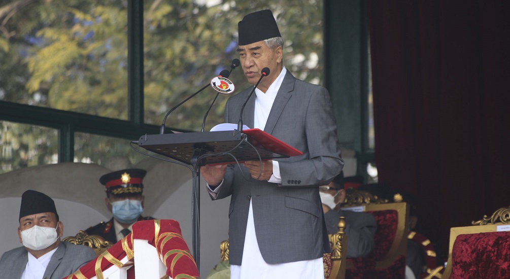 देउवाले सात सालको राजनीतिक क्रान्तिबाट प्राप्त सफलतामा टेकेर अघि बढ्दै जाँदा आज मुलुकमा सङ्घीय लोकतान्त्रिक गणतन्त्रात्मक र समावेशी शासन प्रणाली स्थापना हुन सकेको र यसलाई अब हामी सबैले थप सबल र सुदृढ तुल्याउन आवश्यक रहेको बताए । उनले भने, “हामी संविधानसभाबाट नेपाली जनताले चाहेजस्तो संविधान निर्माण गरी त्यसैअन्तर्गत मुलुकमा शासन व्यवस्था सञ्चालन गर्न सफल भएका छौँ हाम्रा भावना र चाहनालाई संविधानमा प्रतिविम्बित गर्न सक्षम भएका छौँ । समाजमा व्याप्त छुवाछुत, जातीय तथा लैङ्गिक भेदभावजस्ता कूरीति र कुप्रथालाई उन्मूलन गर्दै सबैलाई समान अवसर र सहभागिता सुनिश्चित गरी समावेशी विकासको परिकल्पना गरेका छौँ ।”