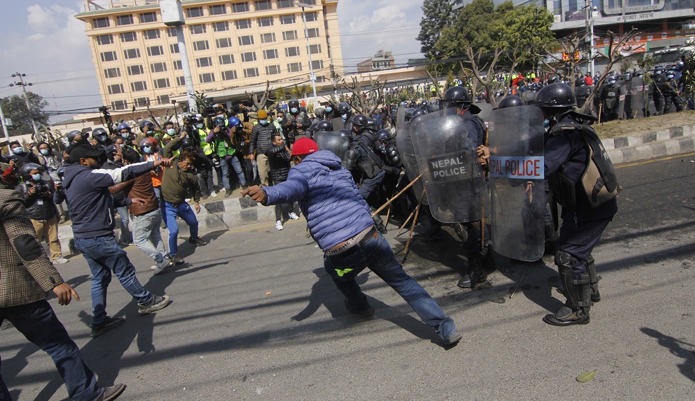प्रदर्शनकारीले निषेधित क्षेत्र तोडेपछि नयाँ वानेश्वर क्षेत्र तनावपूर्ण बनेको छ । प्रहरीको ब्यारिकेड तोडेर प्रदर्शनकारी अघि बढेपछि प्रहरीले पानीको फोहोरा प्रयोग गरेको छ । केही प्रदर्शनकारीलाई प्रहरीले पक्राउ गरेको छ ।