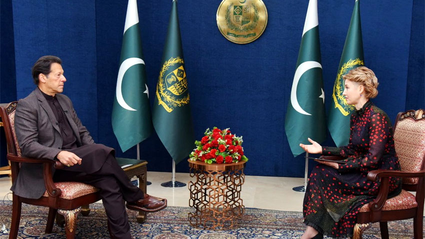 प्रधानमन्त्री खानले रुसको भ्रमण गर्नु एक दिनअघि टेलिभिजन अन्तर्वार्ता दिएका हुन् ।  भारतसँगको सम्बन्धको बारेमा सोधिएको प्रश्नमा प्रधानमन्त्री खानले कश्मीर विवाद समाधान गर्न आफ्नो सरकारले सत्तामा आएपछि तुरुन्तै भारतसँग सम्पर्क गरेको स्मरण गरे। यद्यपि नाजीबाट प्रेरित नस्लवादी विचारधाराले भारतलाई कब्जा गरेको भन्दै उनले खेद व्यक्त गरे।