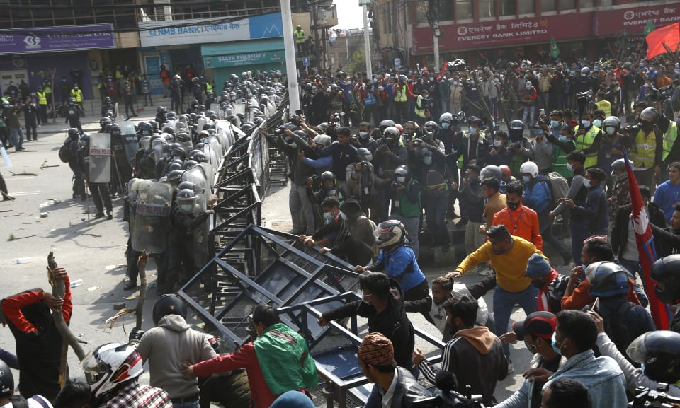 संसद भवन नयाँ बानेश्वर नजिकै भएको प्रदर्शनका क्रममा प्रदर्शनकारी र प्रहरीबीच झडप भएको छ ।