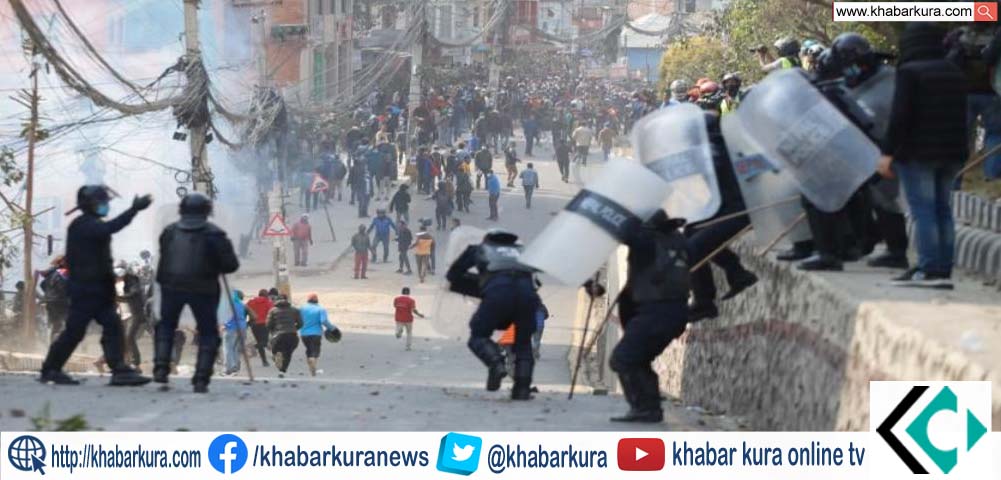 काठमाडौं । एमसीसीको विपक्षमा प्रदर्शनमा उत्रिएका र सुरक्षाकर्मीबीचको झडपले नयाँ बानेश्वरलाई ‘युद्ध मैदान’को झल्को दिएको छ ।