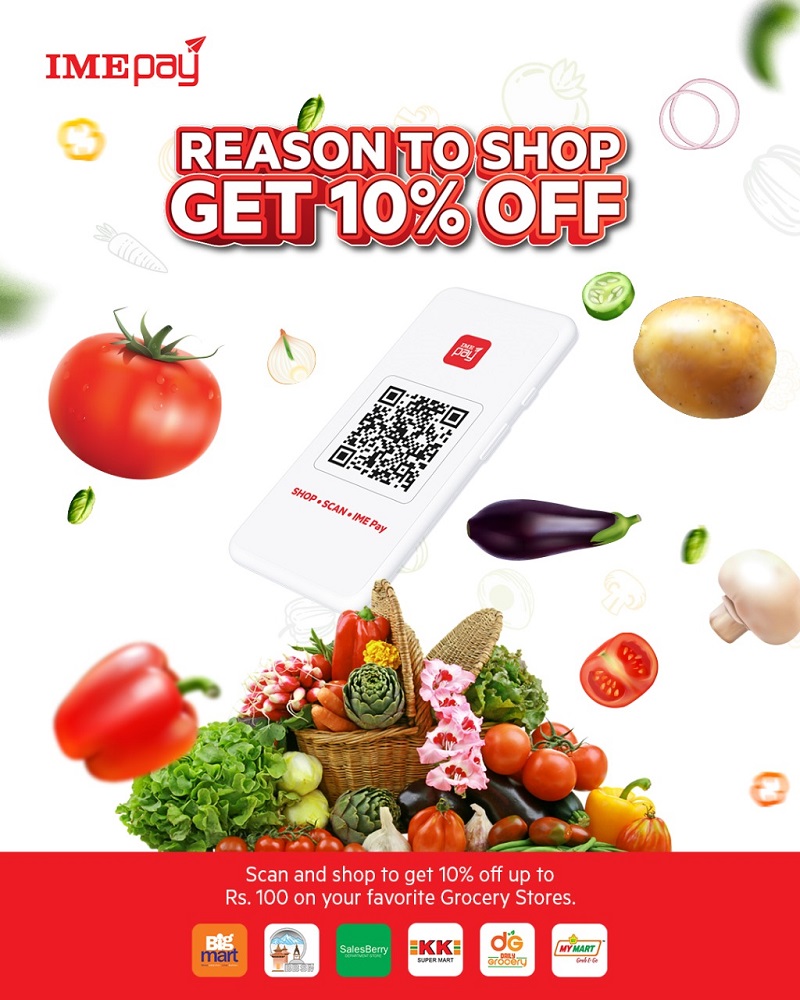 आईएमई पेले विभिन्न डिपार्टमेन्टल स्टोरहरुमा किराना खरिद गर्दा आफ्नो प्रयोगकर्ताहरुको लागि १० प्रतिशत छुट पाउने अफर सार्वजनिक गरेको छ।