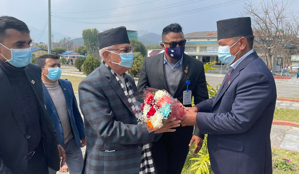 पोखरा विमानस्थलमा उनलाई नेता पृथ्वीसुब्बा गुरुङसहितका एमालेका नेताले स्वागत गरेका छन् ।